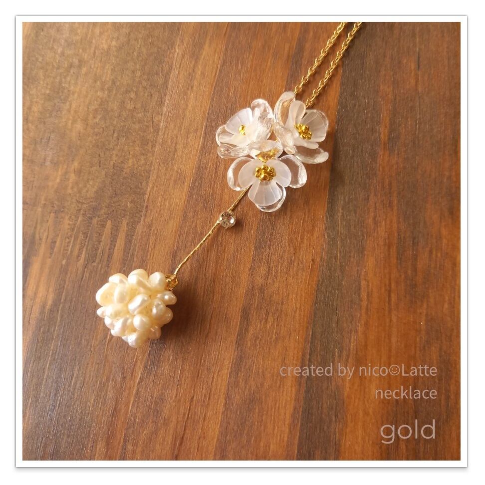 ネックレス nico☺︎Latte:クリアフラワーネックレス ゴールド