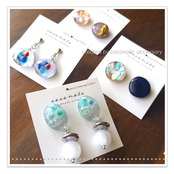 イヤリング coconote 琉球ガラスのまんまるイヤリング (真鍮) no.17
