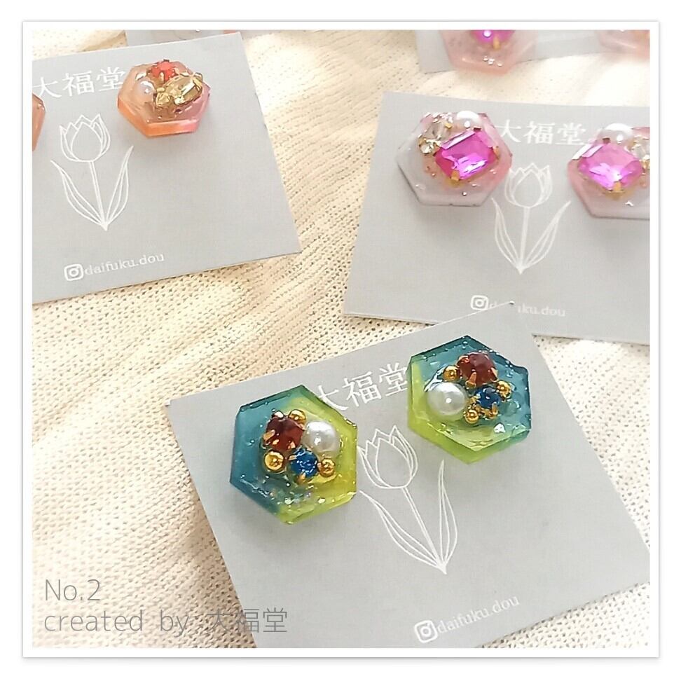 イヤアクセ:大福堂 No.1~8 六角形 (はちの巣) ピアス/イヤリング