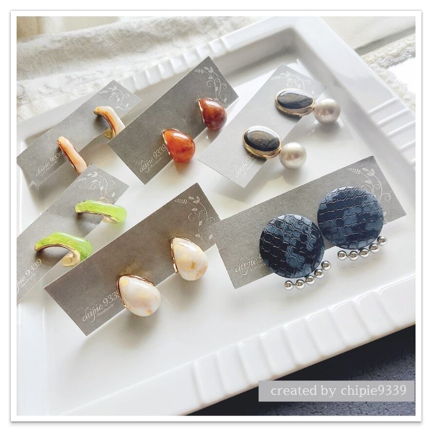 ピアス:chipie9339 No.5 アンティークカボションxパールキャッチ 2way ピアス(ステンレス)
