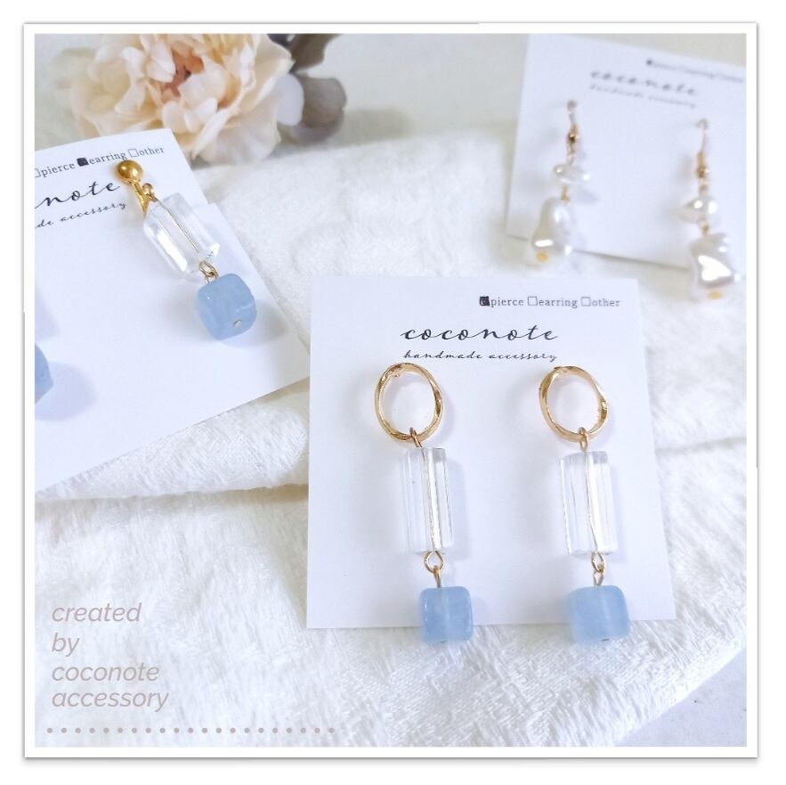 イヤアクセ:coconote No.42.43 アクアマリンストレート ピアス・イヤリング
