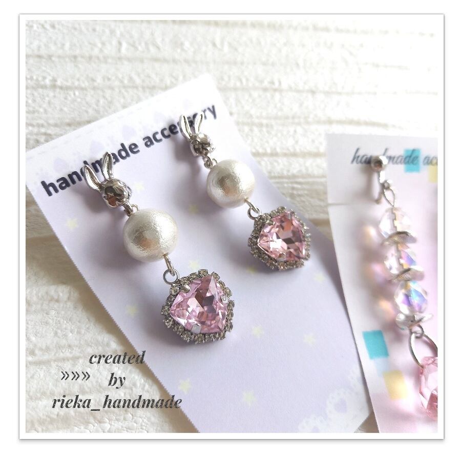 No.25 ♢ ピアス / うさぎちゃん✕コットンパール✕ピンクキラキラ