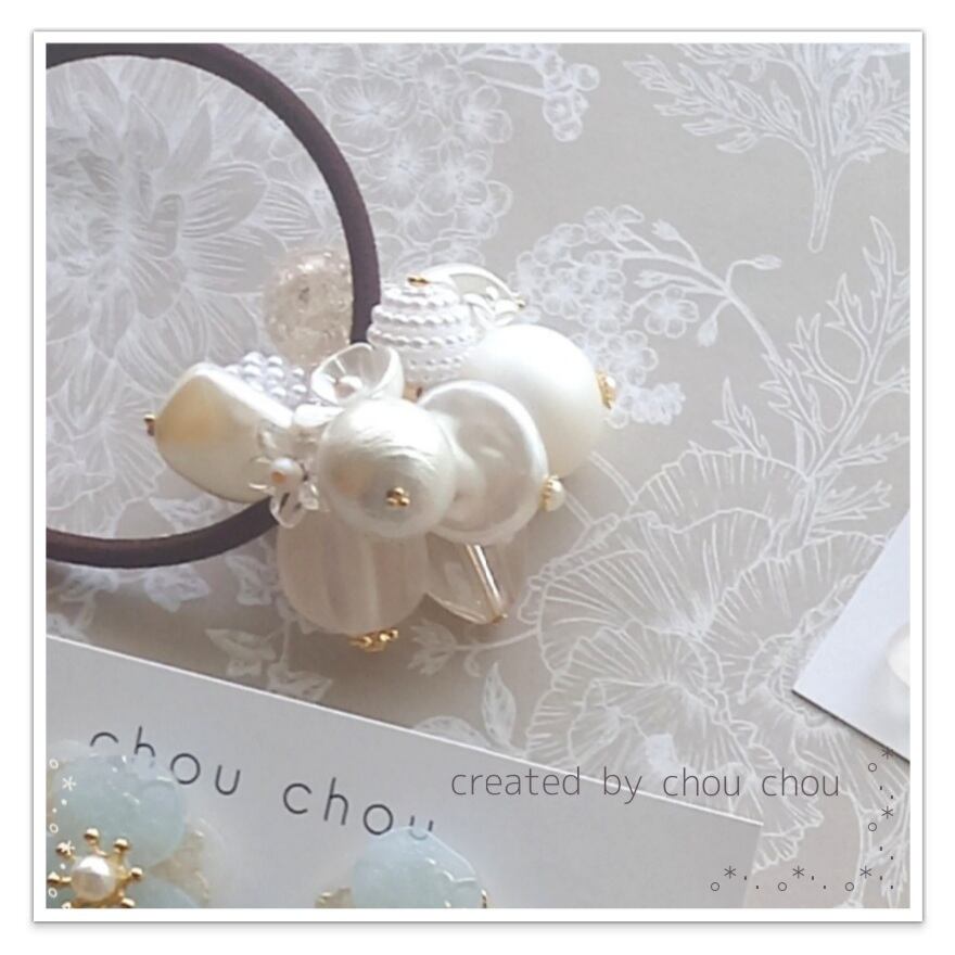 ヘアゴム chou chou オールホワイトのビーズいっぱいヘアゴム