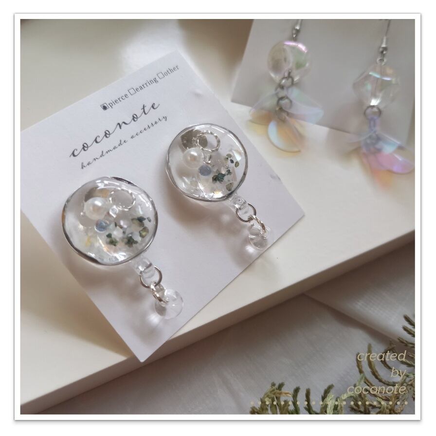ピアス coconote No.57.58 くらげピアス / クリアシェル ピアス (ニッケルフリー)