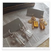 ピアス:chipie9339 No.27.28 ランプワークビーズの2WAY フープピアス (ロジウム / K16gp)