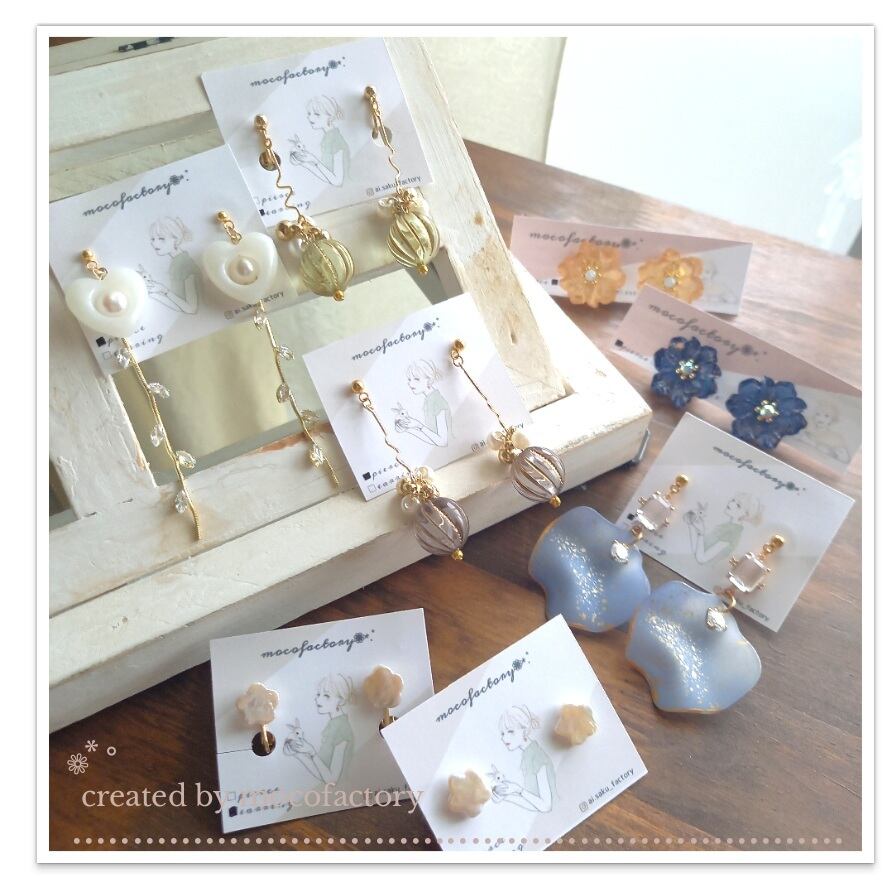 イヤアクセ mocofactory No.89 ハートパールリーフピアス