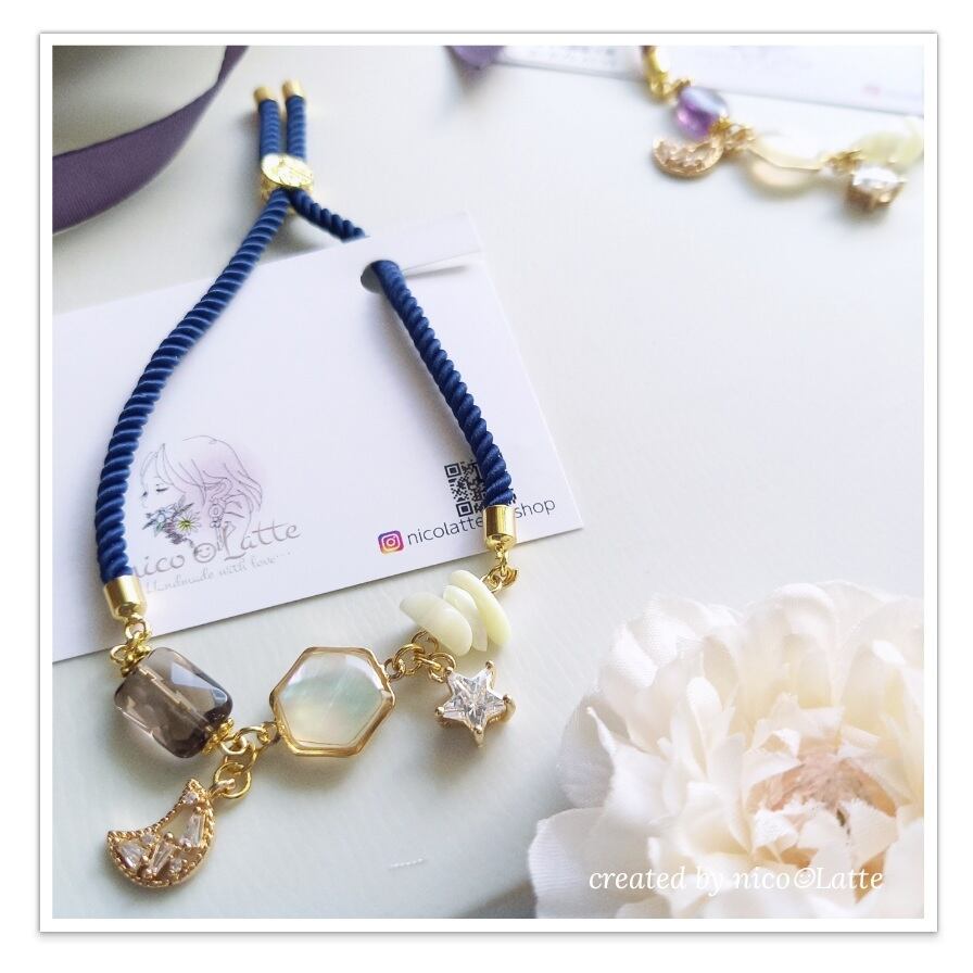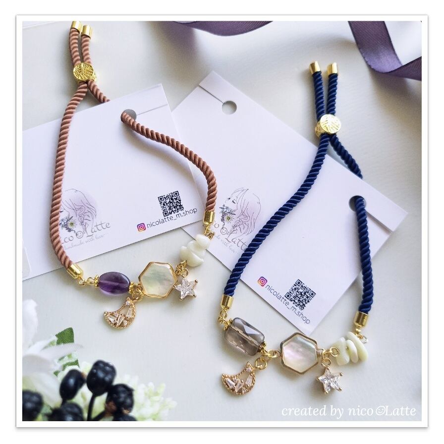 ブレスレット nico☺︎Latte No.73 / 74 Moon&Star ロープブレスレット ライトブラウン / ネイビー