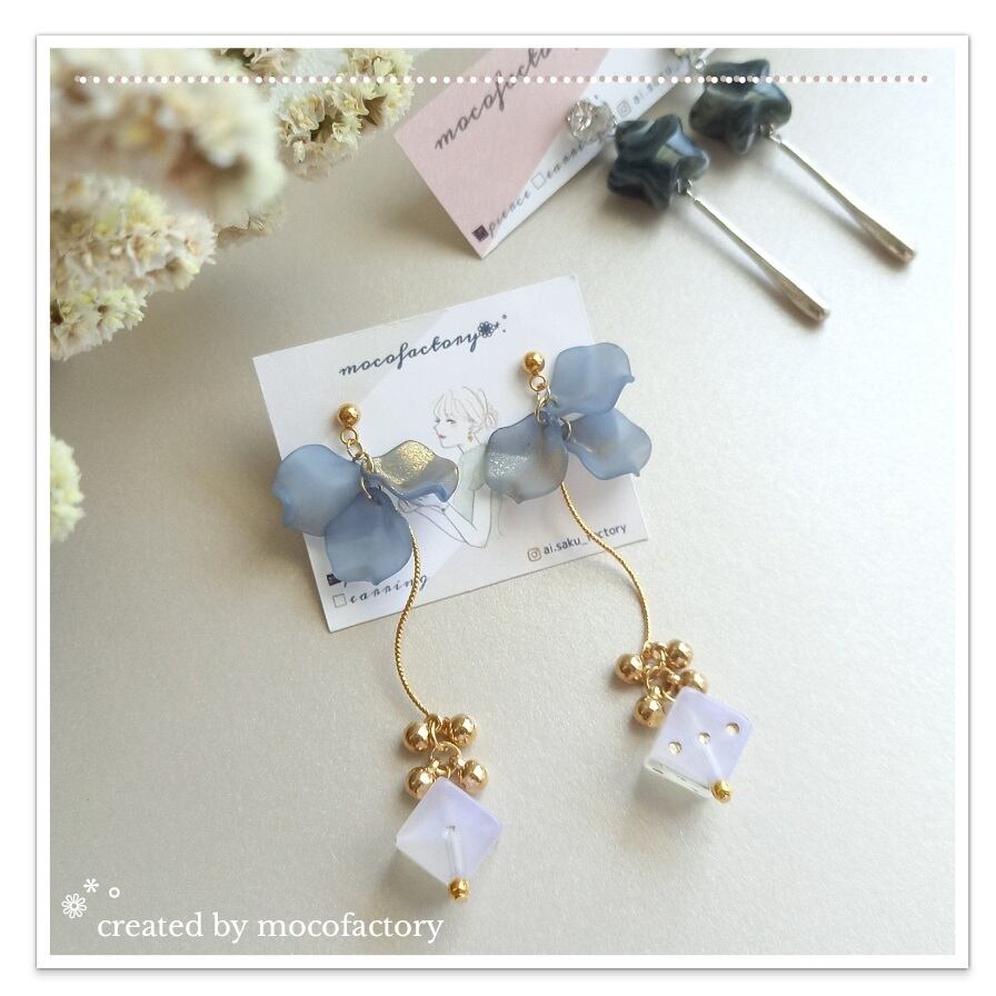 ピアス mocofactory no.103 サイコロと花びらのピアス サージカルステンレス