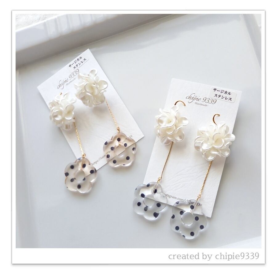 ピアス:chipie9339 No.59.60 フリルフラワードットピアス(サージカルステンレス)