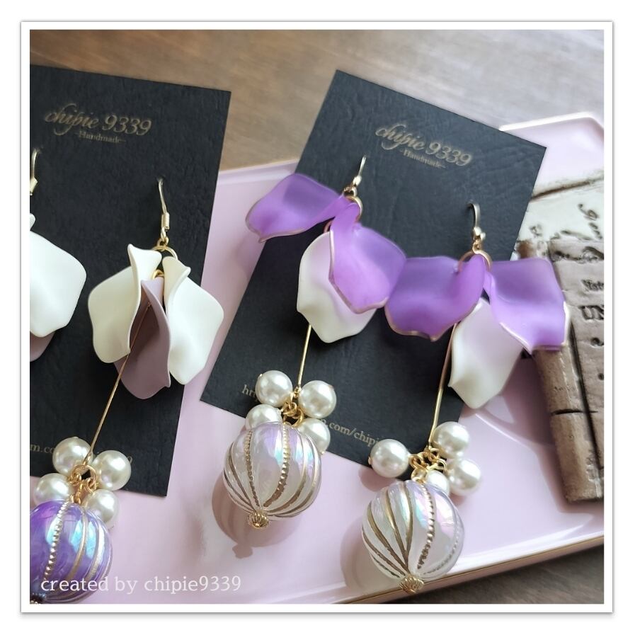 手染花びらとパンプキンっぽい韓国ビーズ♡