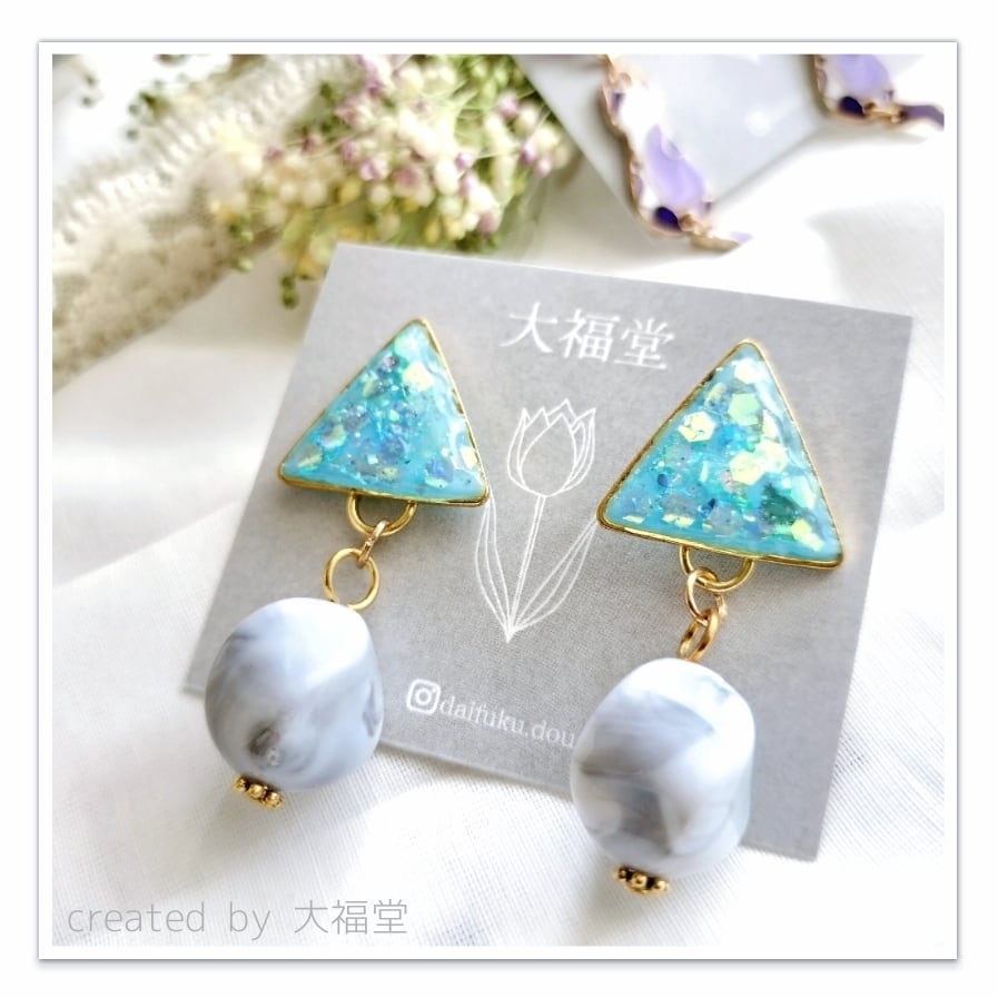 ピアス:大福堂 No.63.64 キラキラ一粒シリーズ sankaku ターコイズブルー / パープル