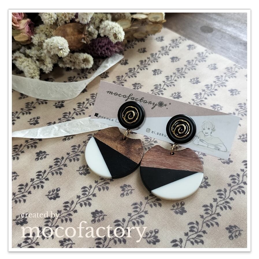ピアス mocofactory No.123 モノクロウッドピアス (サージカルステンレス)