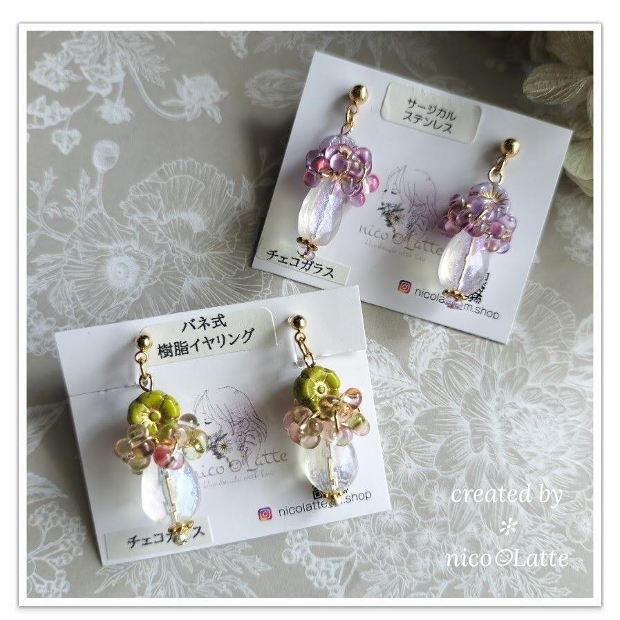 イヤアクセサリー nico☺︎Latte : No.94/95 お花チェコ ピアス・イヤリング